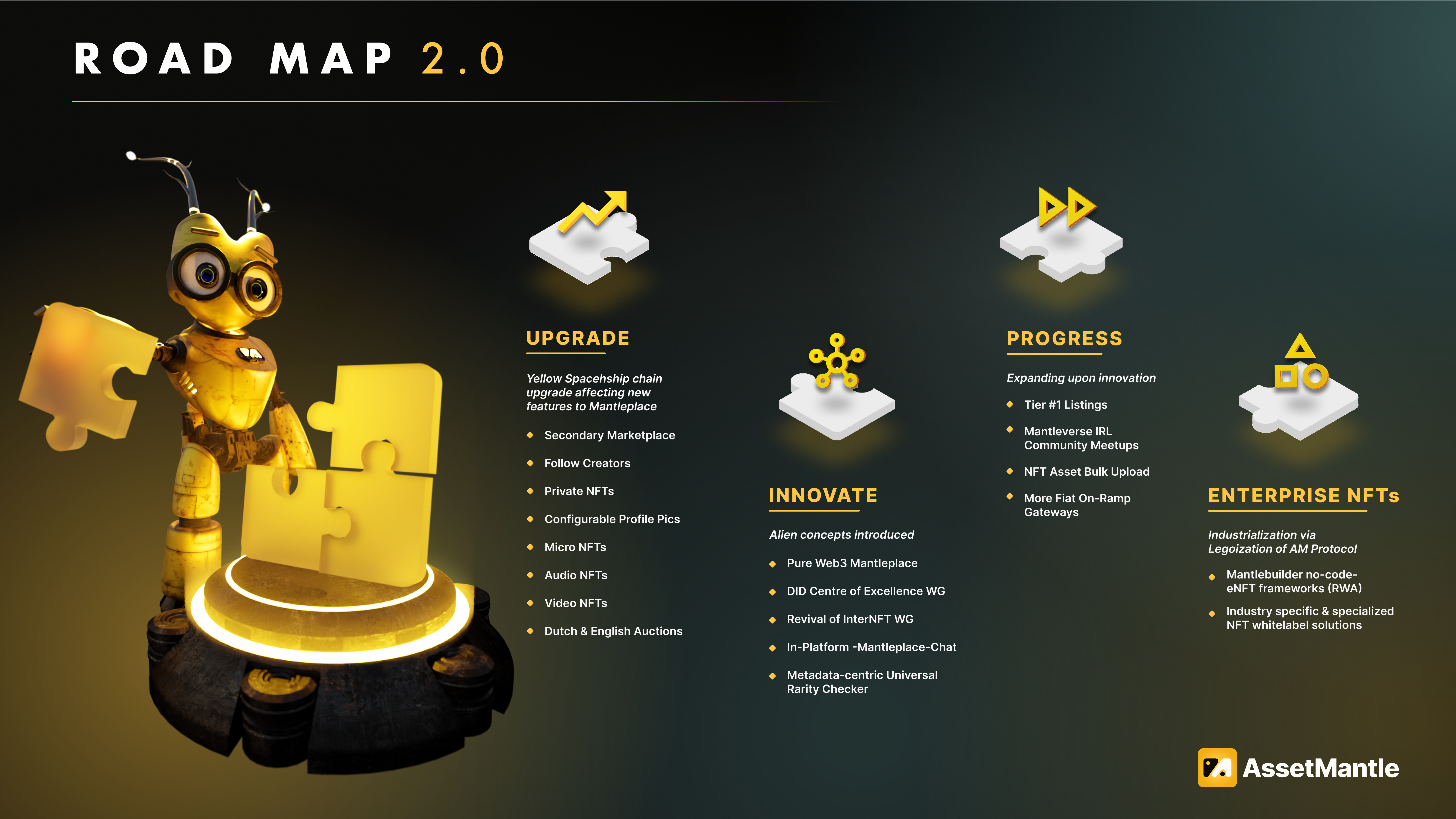 Read more: AssetMantle Roadmap 2.0 Yellow Spaceship Upgrade🚀The highly anticipated Yellow Spaceship chain upgrade has gone live on August 8, 7:16 PM UTC. This significant milestone marks a new era for AssetMantle. Upon successfully applying the resolution at block 7,13,5001 on August 18, 12 UTC, the upgrade will introduce 6 new modules– Assets, Identity, Maintainer, Order, Meta, and Splits. These modules will…